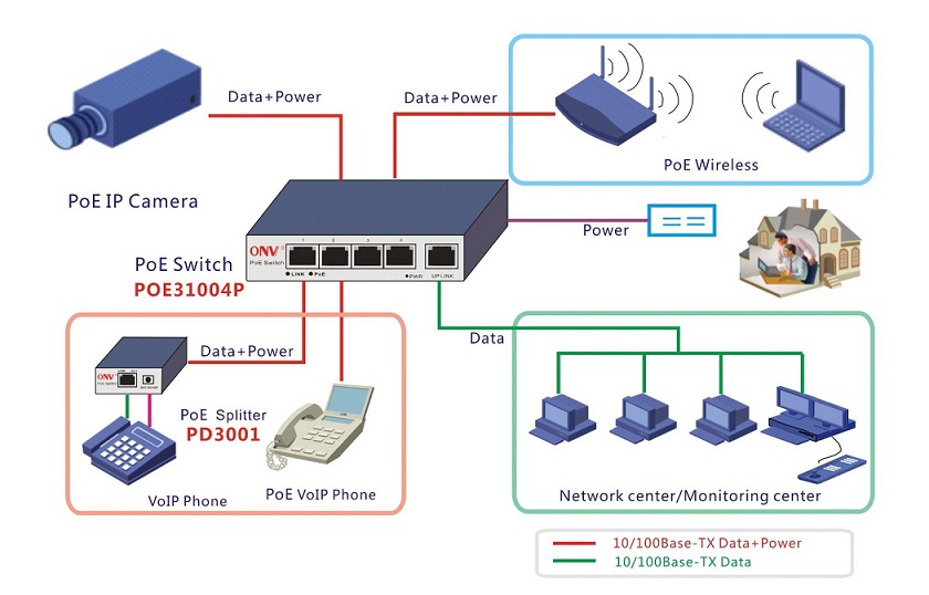 PoE ядро на кабела: 10BASE-T: Cat3,4,5 UTP(≤100 meter); 100BASE-TX: Cat5 or more UTP (≤100 meter)
